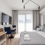 A City Break Zurawie II hotel szobái vasaló eszközökkel és klímaberendezéssel rendelkeznek. Továbbá némelyikük tornácot és erkélyt, valamint szekrényt foglalnak magukba. A tea- és kávéfőző berendezés mellett ingyenes Wi-Fi és síkképernyős műholdas TV is rendelkezésre áll az ön szórakoztatására. A külön WC-t és zuhanyzót biztosító egyes fürdőszobák hajszárítóval és törölközőkkel szintén felszereltek.